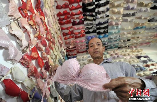[國內新聞]4月21日,海南省三亞市崖城鎮的陳清祖花費20年時間收集5000余件文胸,在一間棟不起眼小房間的墻壁上、天花板上掛滿了各式各樣的女性文胸,數量多達5000余件,而這些令人目不暇接的“藏品”來自全國30多所高校的女生。據陳清祖介紹,他的夢想是將來打造一間文胸收藏館,通過展示內衣,提高全社會對女性乳房健康的關注度。圖為陳清祖展示他的“特別藏品”。